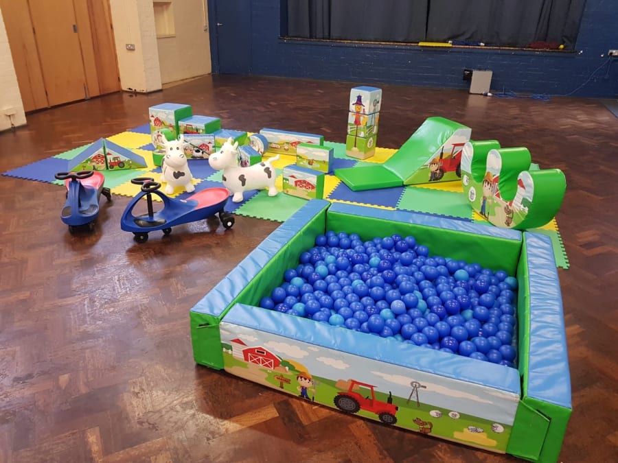 Our silver farmyard package is available for hire in Sutton, Purley, Croydon and south London. With our 17 piece farmyard set, matching 5ft Ball pool, softplay slide, large rocker 2 happy hopperz and 2 diddi cars it will keep the kids entertained for hours.